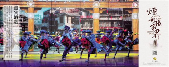 《烟雨张家界》讲述了远古时代张家界土家族青年洛巴冲和苗族姑娘阿依朵之间缠绵悱恻、美丽动人的爱情故事。新版《烟雨张家界》演出时长80分钟,保留了《大山深处苗家寨》、《缠头帕》、《织锦》、《挤油尖》、《爱在山水间》等精彩节目,新增了《天浴》、山歌对唱等张家界原生态民俗文化类节目。在《土家婚礼》中,穿插了拦门酒、猜新娘等和观众互动的趣味环节,4位扮相滑稽的媒婆还大跳夸张的《江南STYLE》舞蹈。