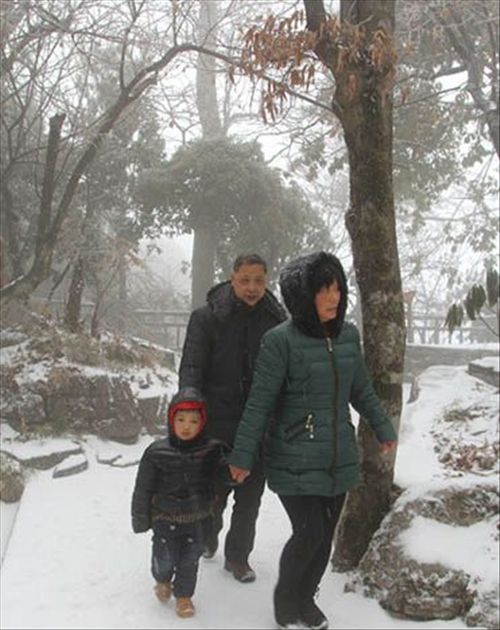 张家界天门山景区迎来了2014年的首场雪,早晨开始下小雪,到中午时分已变成大朵的雪花飘下,景区游道上覆盖了厚厚的一层白雪,树枝上则形成了各式各样的冰棱树挂,美不胜收,惹得过往游客欣喜不已。